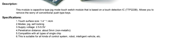 Spesifikasi sensor touch:
