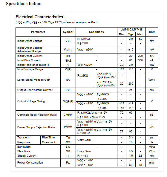 Op-Amp memiliki beberapa karakteristik, diantaranya: